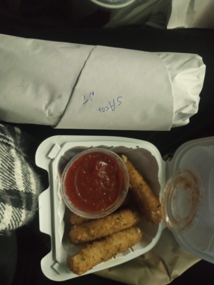 Mozzarella Sticks and a Shrimp Cheesesteak